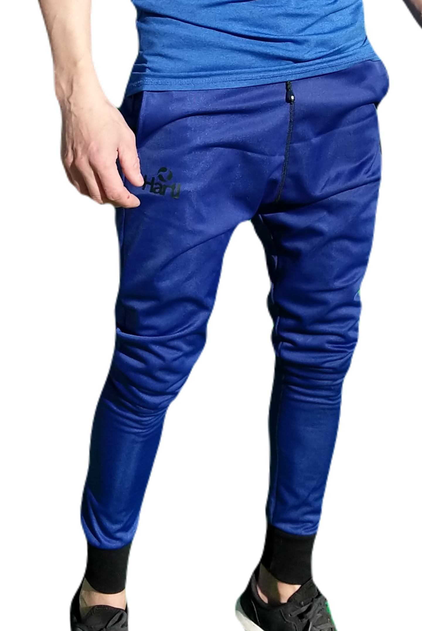 Babuchas de hombre, en azul con botamanga y cintura en negro, urbanas sport o training. Cómodas, para todo tipo de actividades. Textil set deportivo fino, tecnología dry de secado rápido.