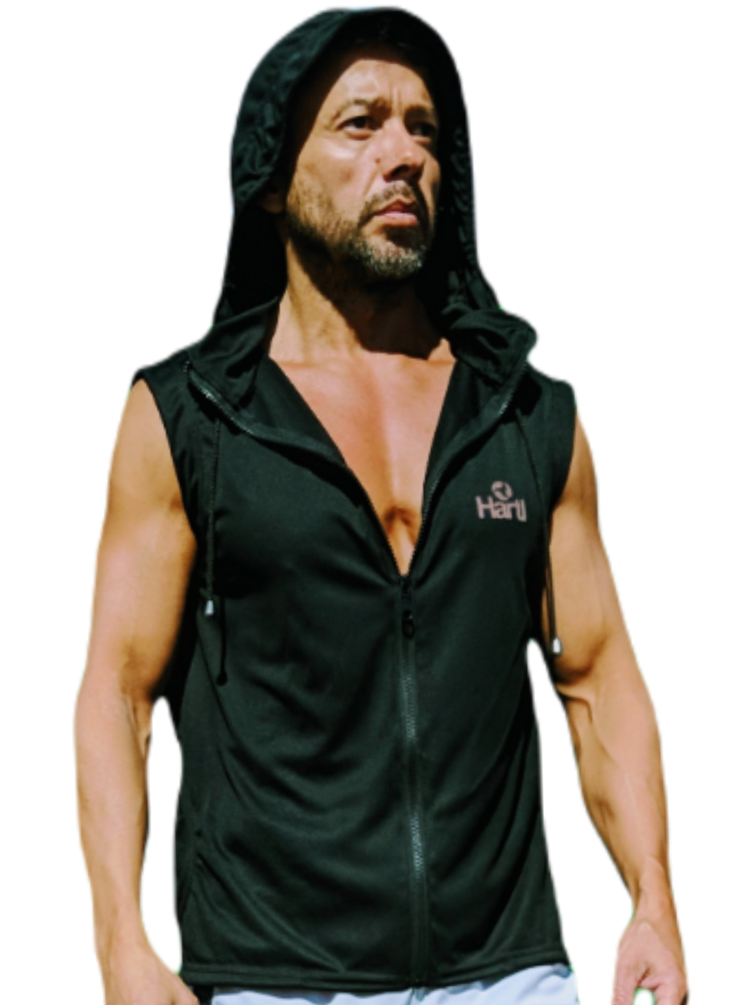 Chaleco, tipo Remera sin manga con capucha y cierre cremallera delantero. Confeccionado en set deportivo poliéster con tecnología de secado rápido dry. Apto para uso casual urbano , deportivo y entrenamiento intensivo.